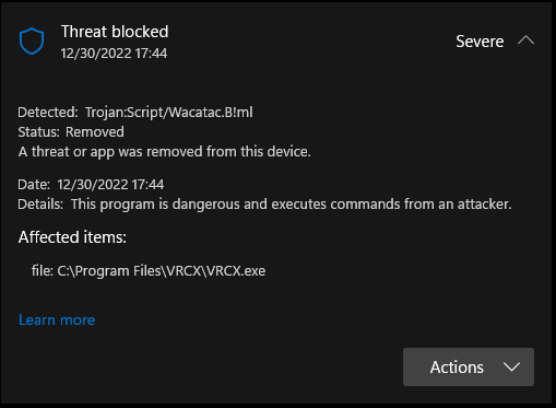 Since the latest update Windows has started to recognize VRCX as a trojan. As a result the program keeps getting removed when I install the latest version. I would prefer to not have to have to add exception in my protection for this.
