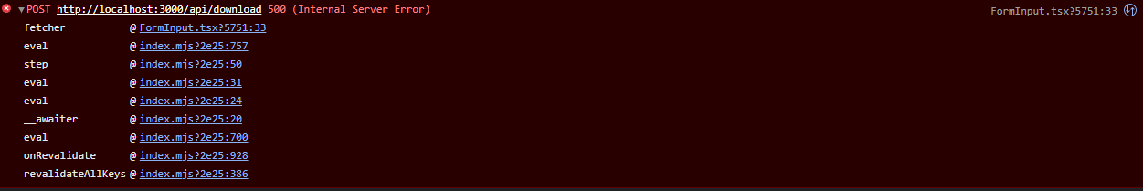 FormInput.tsx?5751:33 POST http://localhost:3000/api/download 500 (Internal Server Error)