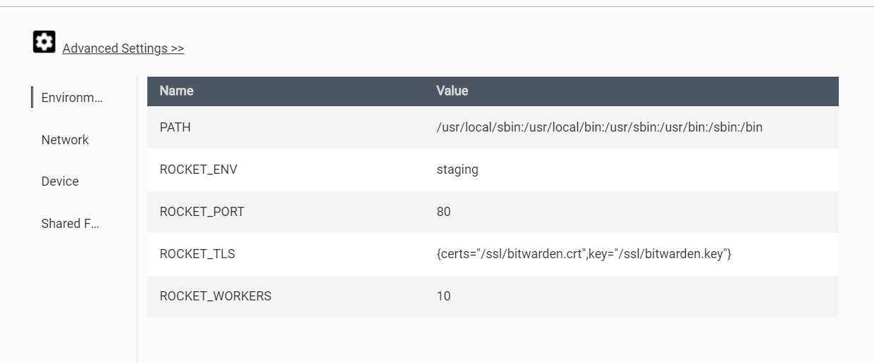 I am trying to get bitwardenrs running on QNAP ContainerStation for local use only.